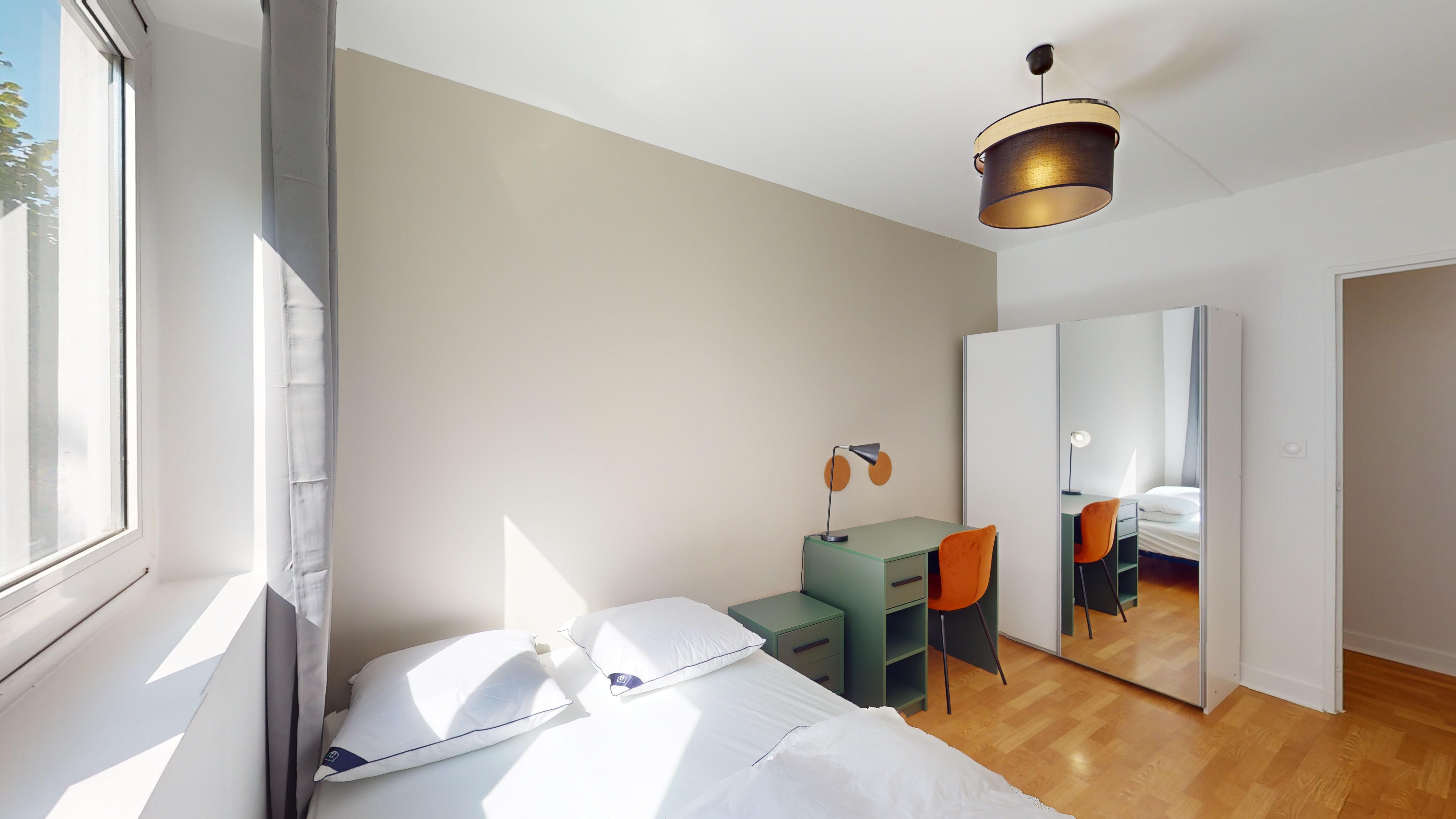 La chambre Room 4, d'une superficie de 9 m², est spécialement aménagée pour une personne. Elle comprend un lit double confortable, une armoire spacieuse pour vos affaires, ainsi qu'un bureau et une chaise pour travailler ou étudier en toute tranquillité. La chambre bénéficie également d'une connexion internet haut débit et partage une salle de bain bien entretenue avec d'autres locataires.