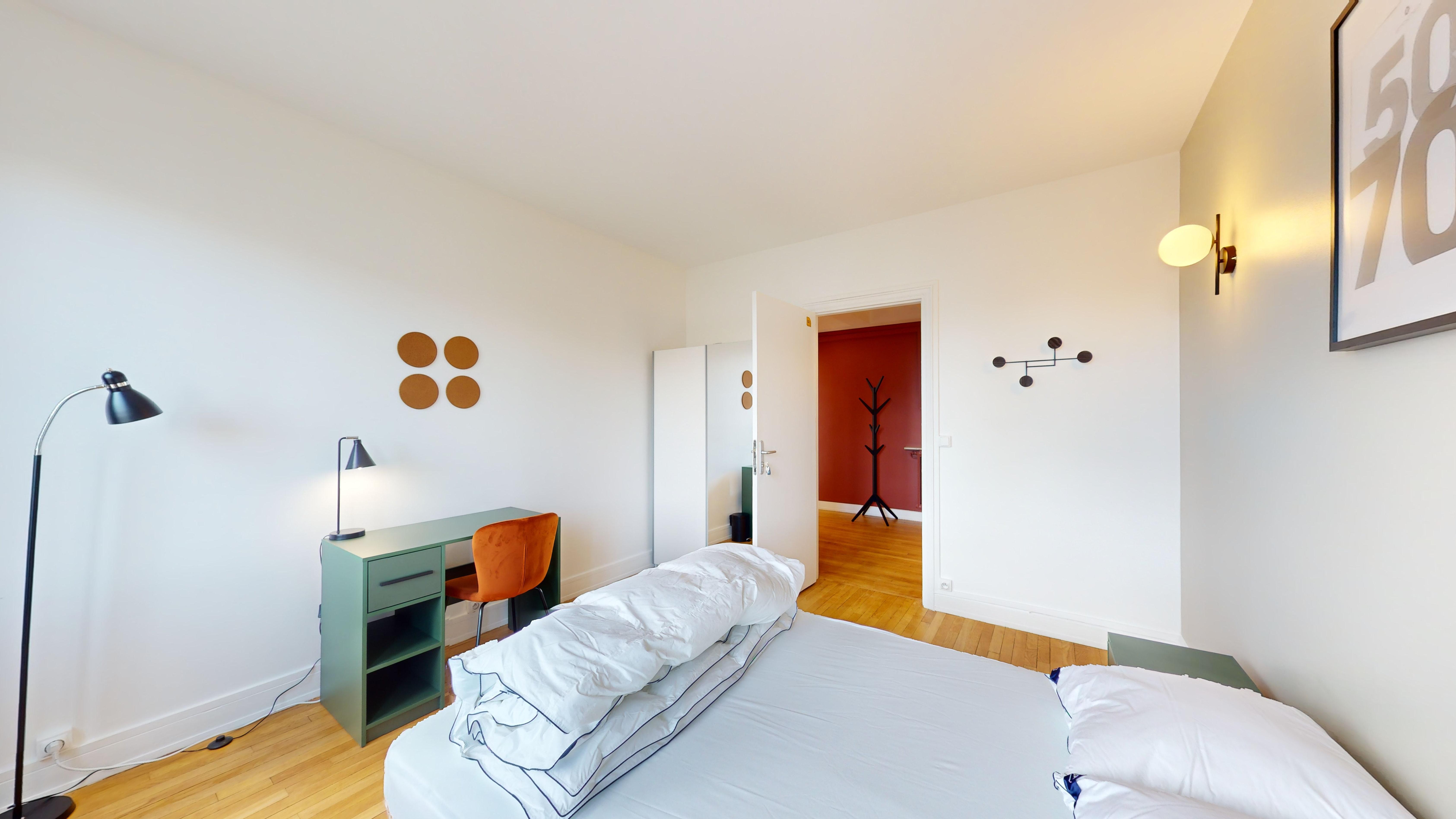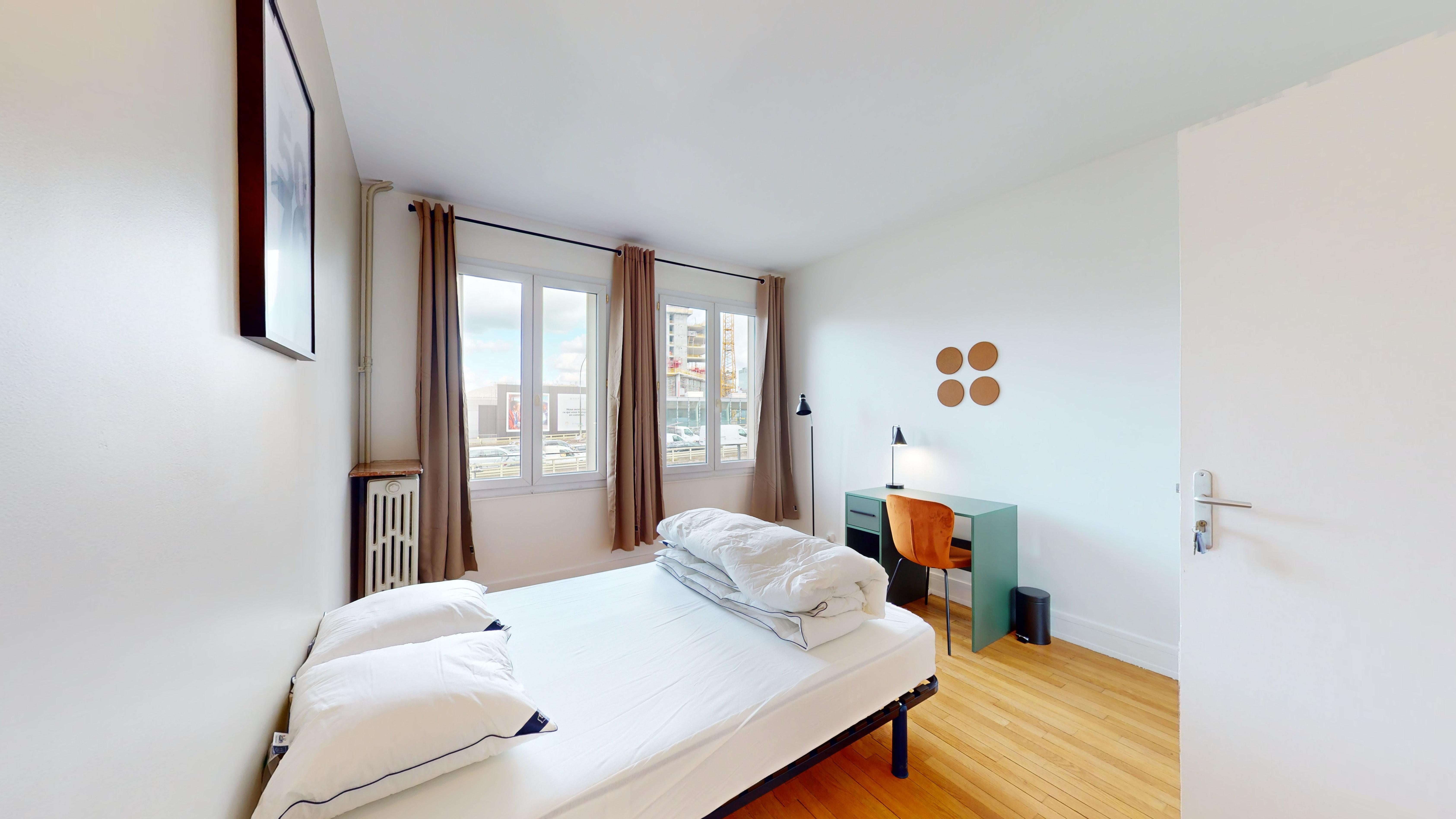 La chambre que nous proposons est un espace confortable et bien aménagé. Elle comprend un lit douillet, un bureau pour travailler et des rangements pour vos affaires. La salle de bain privative assure votre intimité et confort.