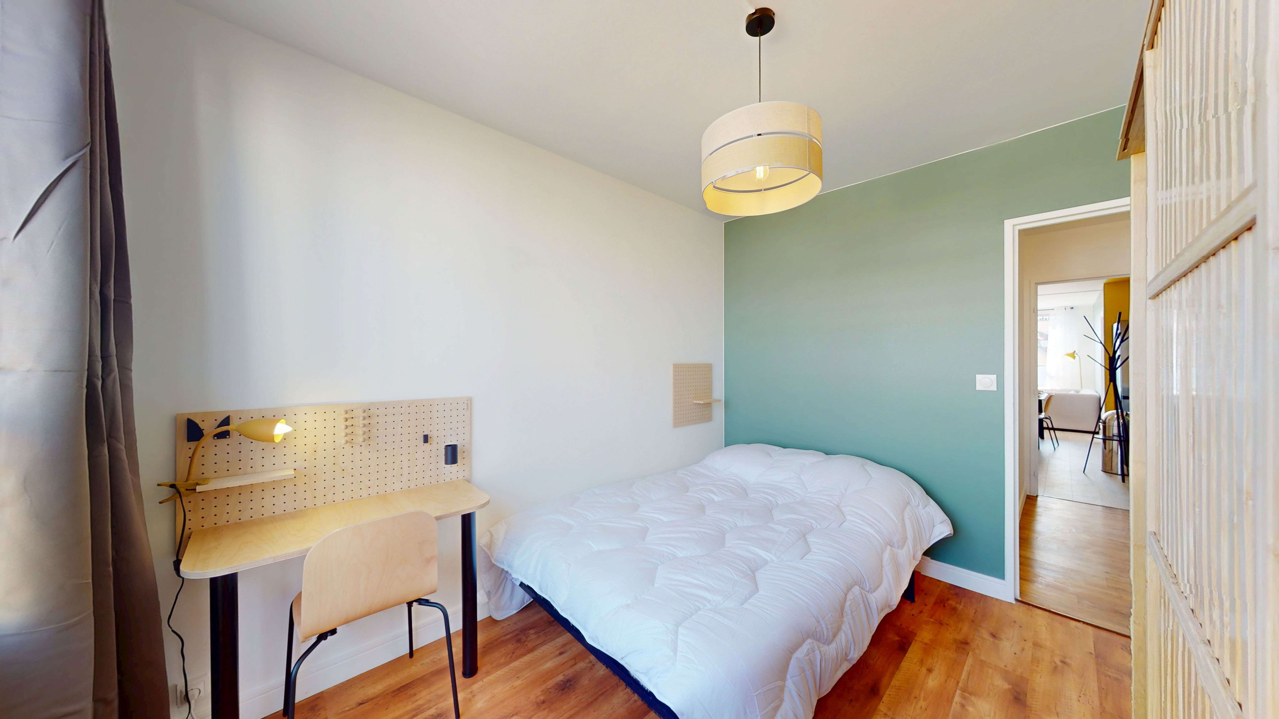 La chambre "Room 4" est un espace douillet de 9m2 avec un lit double confortable, une connexion internet haut débit pour surfer sans souci et un bureau pour travailler ou étudier. Vous aurez également une armoire pour ranger vos affaires, des étagères murales, et tout le nécessaire pour vous sentir chez vous.