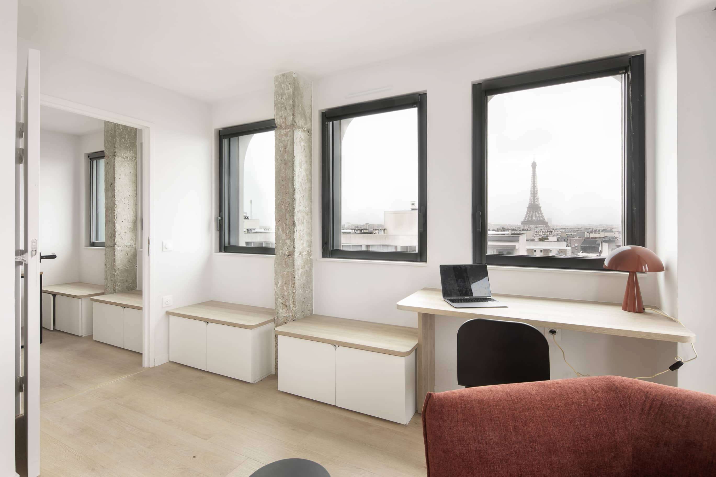 Bienvenue à La Résidence, un espace de vie dynamique et convivial conçu pour le coliving moderne. Avec ses 3284m2 répartis sur dix étages, cette résidence offre non seulement 96 logements privés mais aussi des espaces partagés pensés pour le confort et la convivialité. Profitez de salons communs pour vous détendre, de cuisines équipées pour préparer vos repas, d'une buanderie pratique, d'une salle de fitness pour rester en forme et d'une magnifique terrasse de plus de 100m2 au dernier étage avec une vue imprenable.