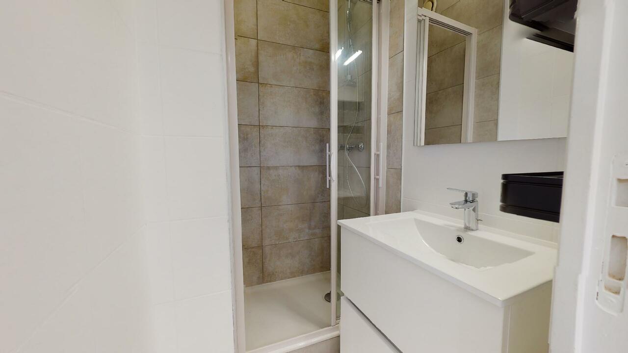Salle de bain avec douche et meuble vasque