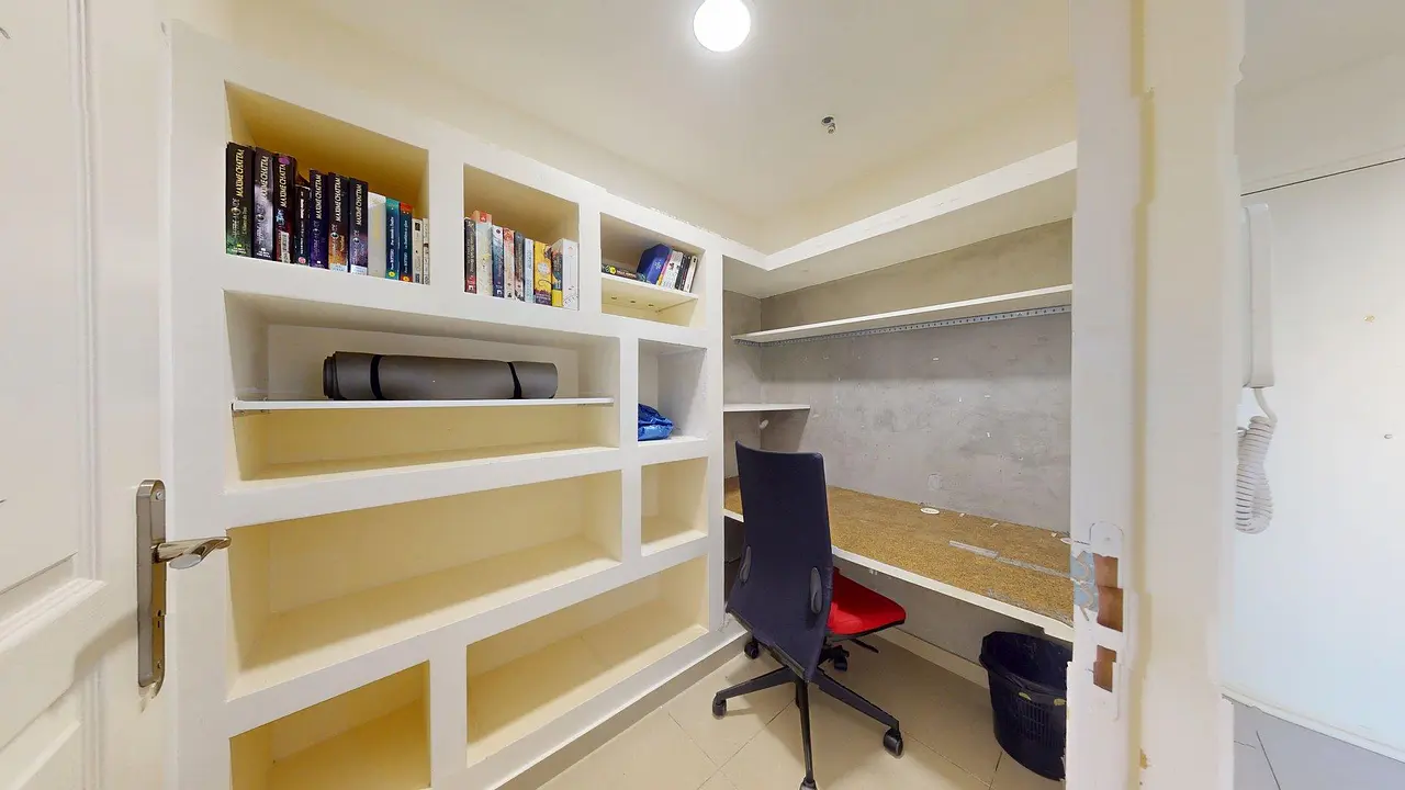 La pièce de vie est meublée d’un canapé, d’une table basse, d’une télévision, ainsi que d’une table à manger avec des chaises pour profiter de moments conviviaux. Elle donne accès à une loggia offrant un espace supplémentaire très agréable.