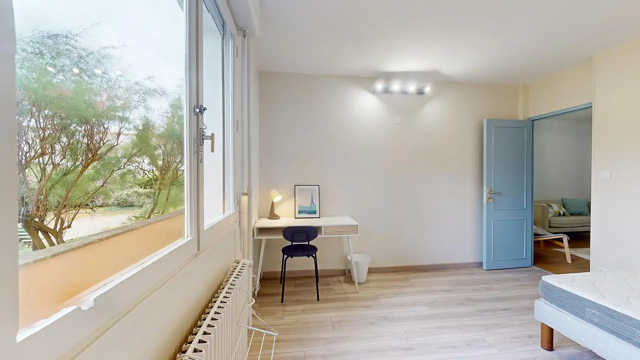 Cette colocation est idéalement située, à deux pas des commerces (supermarché à 100m) et des espaces de loisirs.