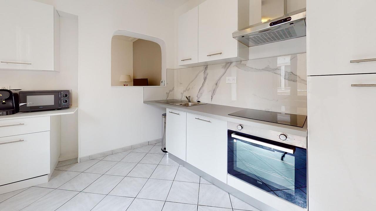 L'appartement s'organise comme suit : un salon avec un canapé, un fauteuil, une table à manger ainsi qu'une télévision, deux chambres, une cuisine et une salle de bains équipée d'une baignoire ainsi que d'une douche.
