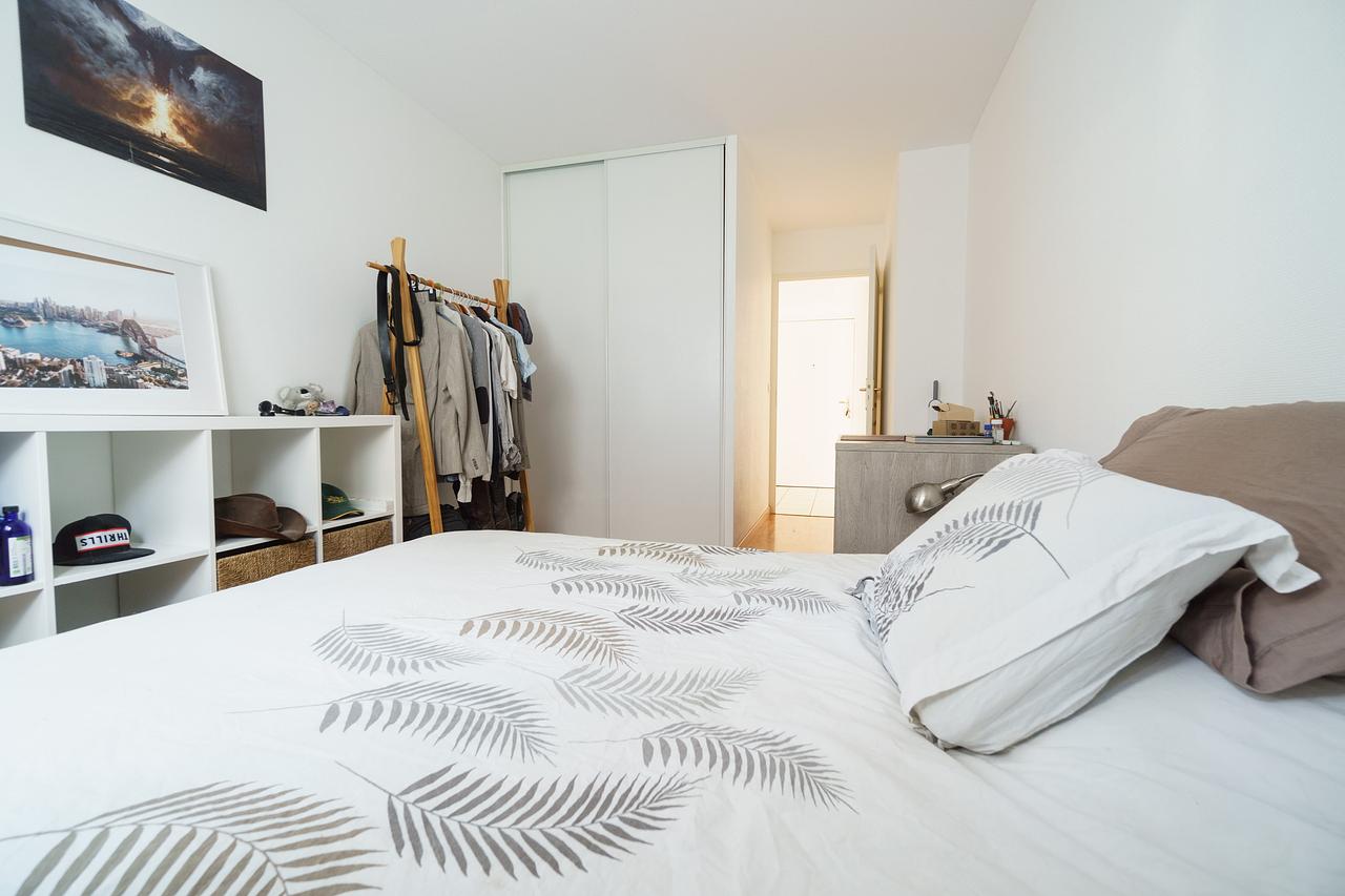 La chambre est lumineuse, elle comprend un lit double et une grande penderie.