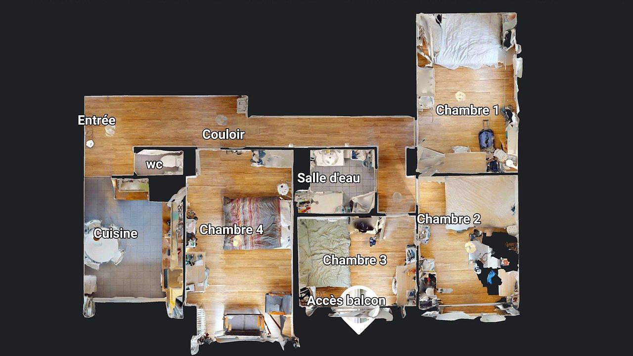 Les quatre chambres sont équipées d’un lit double en 140x200, d’un bureau avec étagère intégrée, d’une chaise et d’une armoire. Un dressing supplémentaire, situé dans le couloir, est également mis à disposition et partagé entre les colocataires. Les grandes fenêtres offrent une lumière naturelle agréable et une vue dégagée.