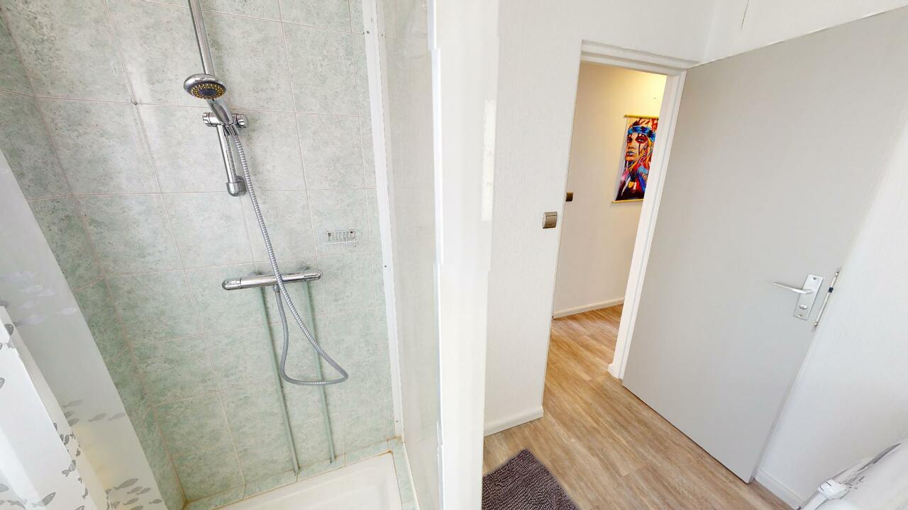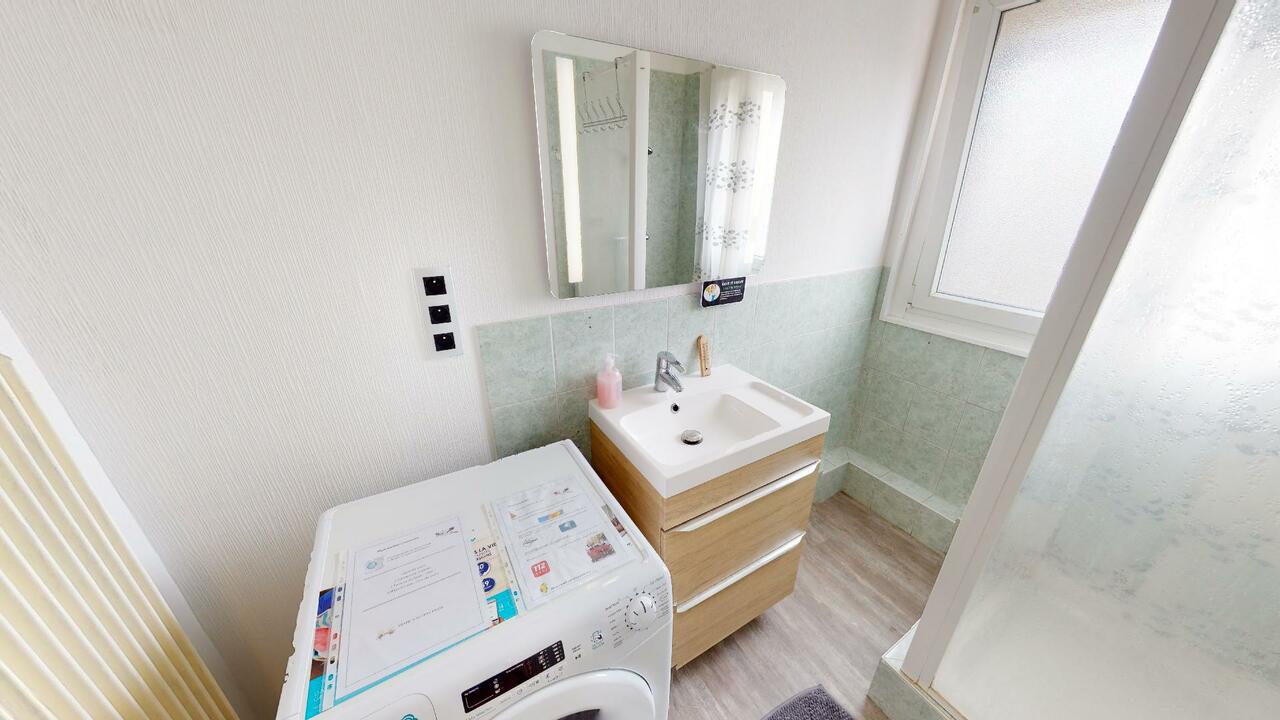 Enfin, une salle de bain avec meuble vasque, douche, machine à laver ainsi qu'un WC séparé viennent compléter ce logement.