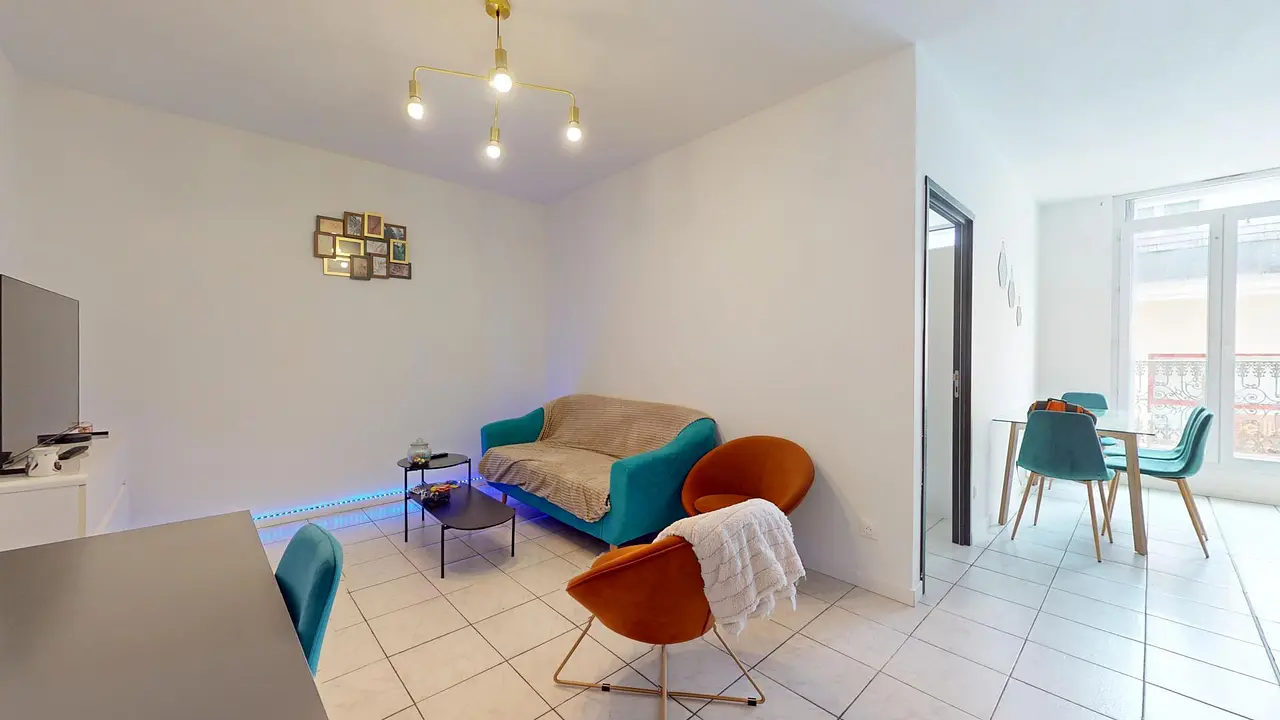 🏠 LES ESPACES COMMUNSLa pièce de vie est meublée avec un canapé, un fauteuil, une table basse, un meuble télévision et une télévision pour vos moments conviviaux. Un balcon est accessible depuis les espaces communs afin de profiter de l’extérieur. Une table à manger accompagnée de chaises complète l'espace, offrant ainsi une solution pratique pour vos repas quotidiens.