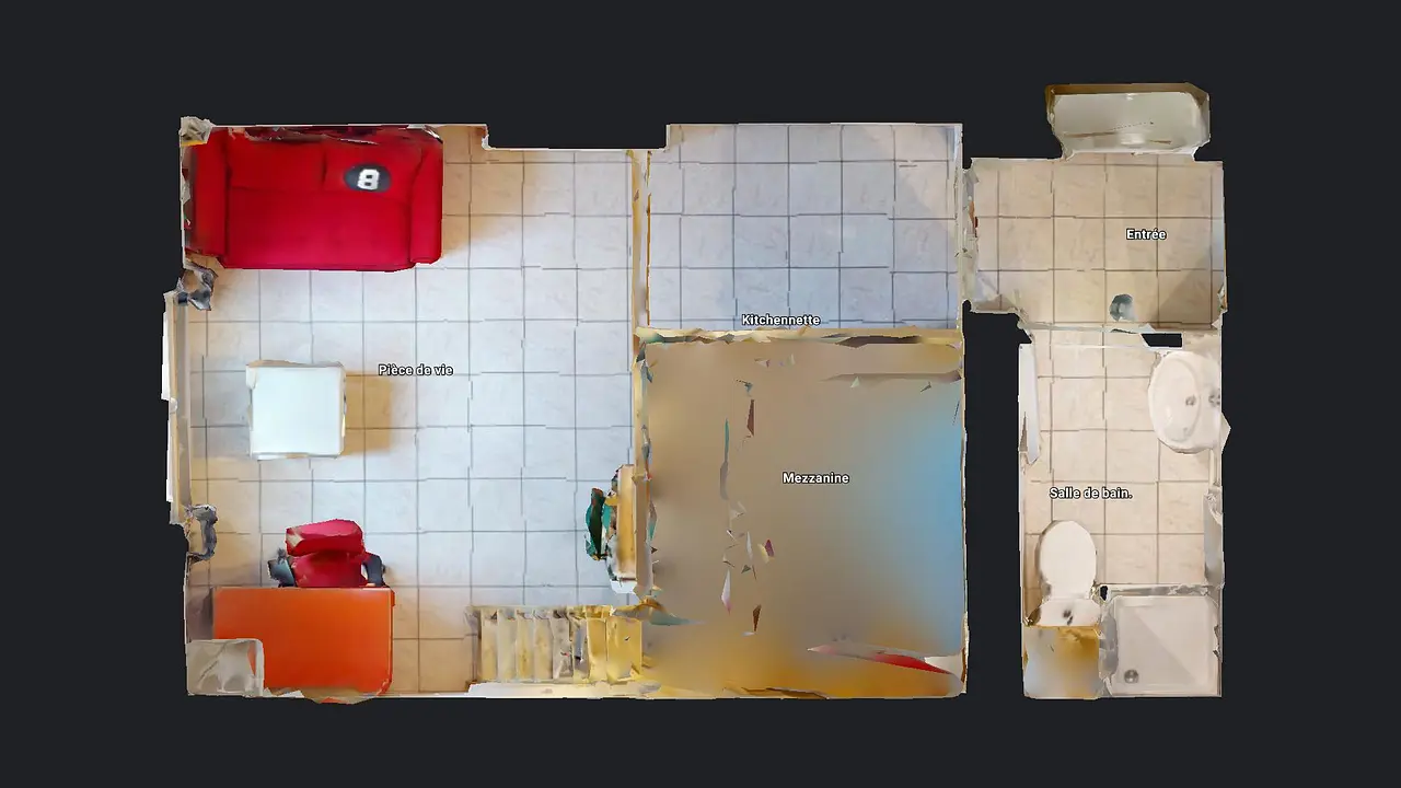 L’espace nuit quant à lui se trouve au niveau de la mezzanine.