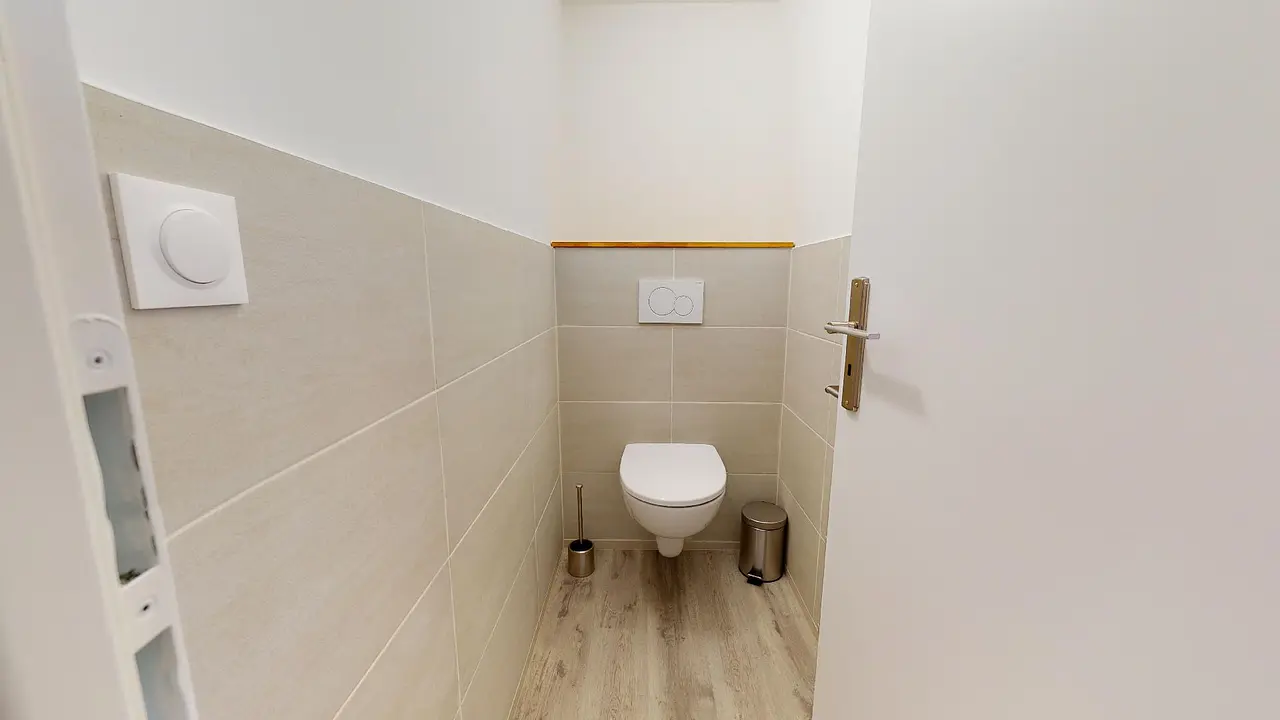 Rénové et très bien aménagé, il se compose d’une grande pièce de vie avec la cuisine ouverte sur le salon et l’espace nuit, des toilettes séparées et naturellement de la salle de bain. L’appartement se situe au RDC de la résidence situé au 10 avenue Rhin et Danube.