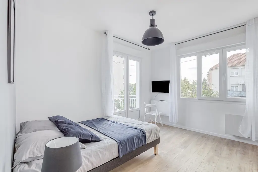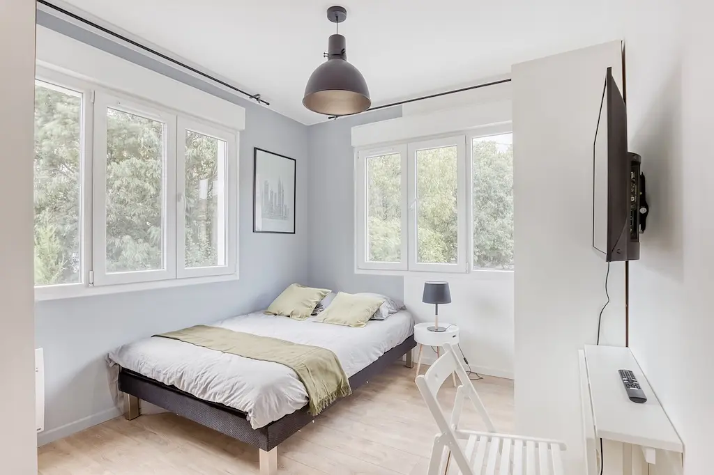 🛏️ Des chambres confortables et fonctionnellesChaque chambre a été pensée pour votre intimité et votre confort. Elles sont toutes équipées d’un lit double, d’un placard de rangement, d’un bureau, d’une télévision. Vous disposerez ainsi d’un espace cosy, pratique et agréable, pour vous sentir parfaitement chez vous.