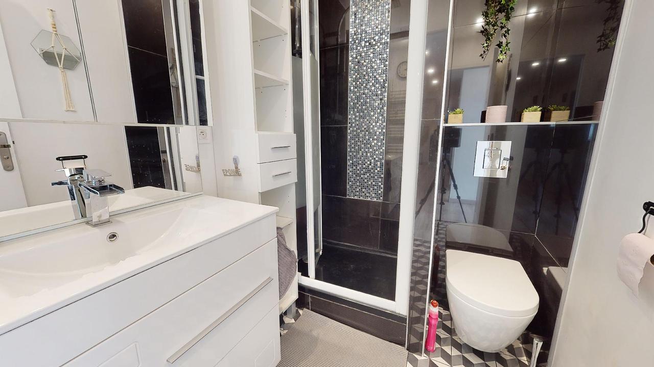 Deux salles de bain et WC équipées d'une douche, d'un meuble vasque et de rangements viennent compléter ce logement.