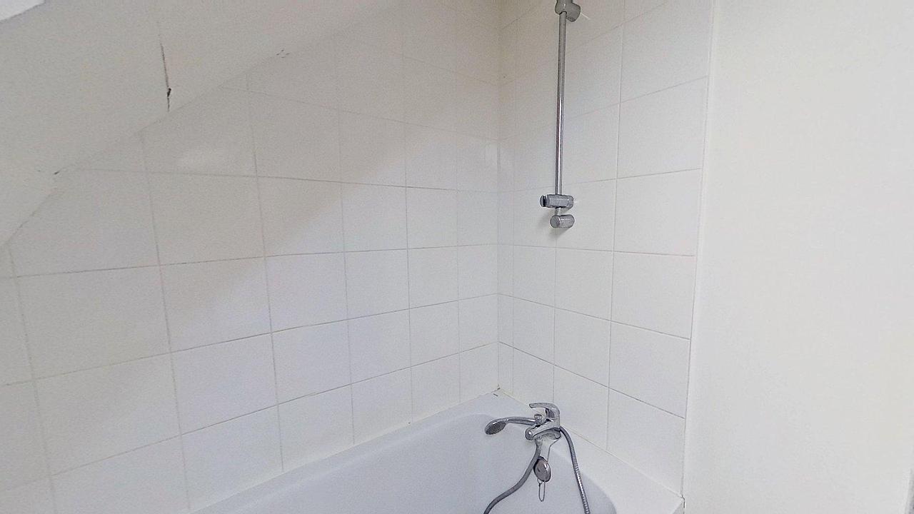 La salle de bain est équipée d’une baignoire et d’un meuble vasque avec miroir, offrant un espace fonctionnel et confortable. Les WC sont séparés, pour plus de praticité.