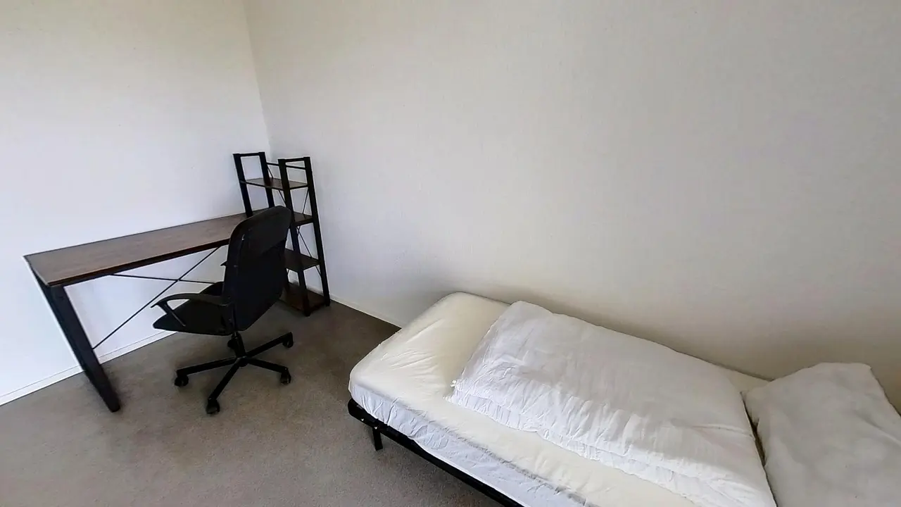 Cette chambre dispose d'un lit simple, d'un bureau avec une chaise, de deux meubles de rangements. Cette chambre a un accès direct sur un balcon vers le sud, partagé avec la chambre 3.