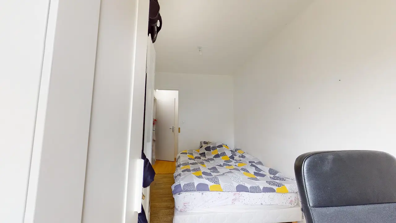 Cette chambre est meublée d'un lit double, d'un bureau simple ainsi que d'un grand placard de rangement.