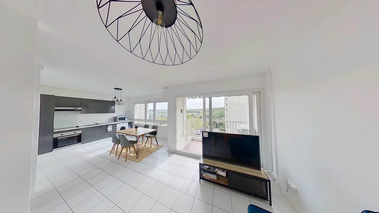 La colocation possède une belle pièce de vie avec cuisine ouverte, et coin salon. Cet espace commun s'ouvre sur un balcon possédant une vue dégagée et arborée.