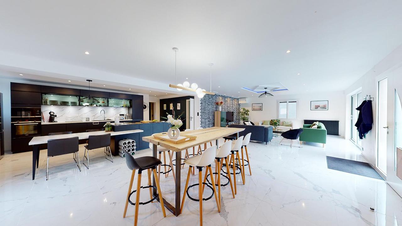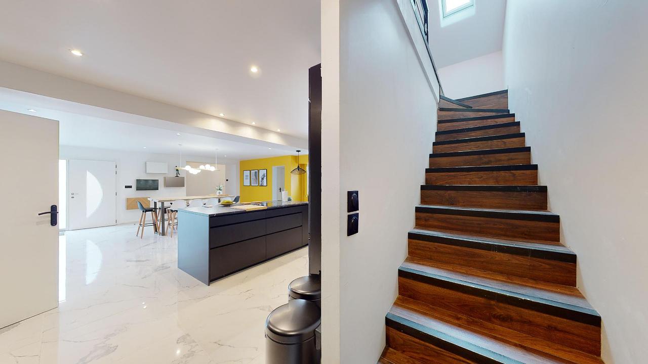 La maison comporte un étage et comprend 4 salles de bain, 10 chambres, une grande buanderie en sous-sol, un grand espace de vie au RDC ainsi que 100 m² de jardin. Les espaces extérieurs sont composés d'une grande terrasse avec salon de jardin, un terrain de pétanque, un grand local à vélo, un local pour recharger les trottinettes ainsi qu'un grand parking.