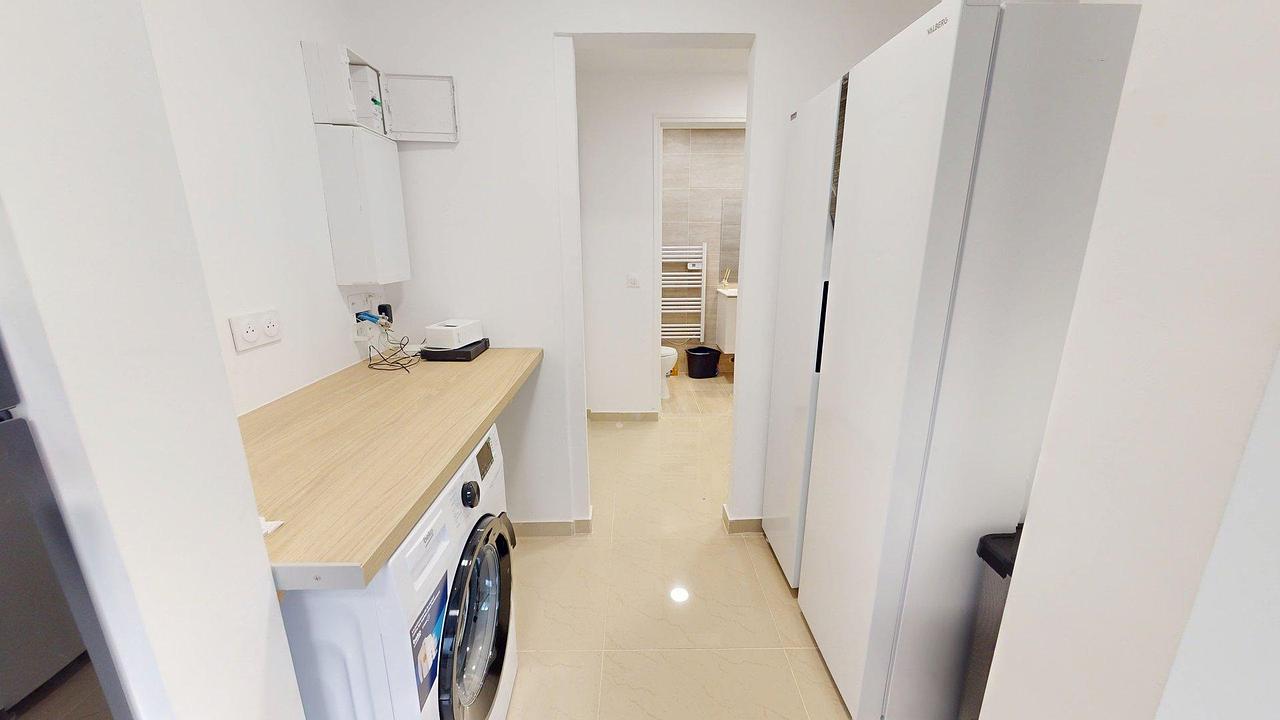 La cuisine ouverte est équipée d'un four, d'un micro-ondes, de plaques de cuisson, de deux hottes, d'un évier, d'un réfrigérateur avec compartiment congélateur, lave-vaisselle, machine à laver, ainsi que de nombreux rangements et ustensiles de cuisine.