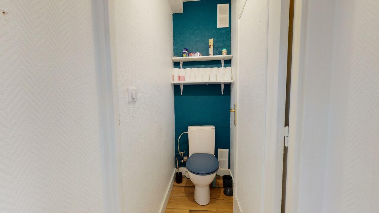 La salle de bain dispose d'une douche, d'un meuble vasque, et des toilettes séparés viennent compléter ce logement.