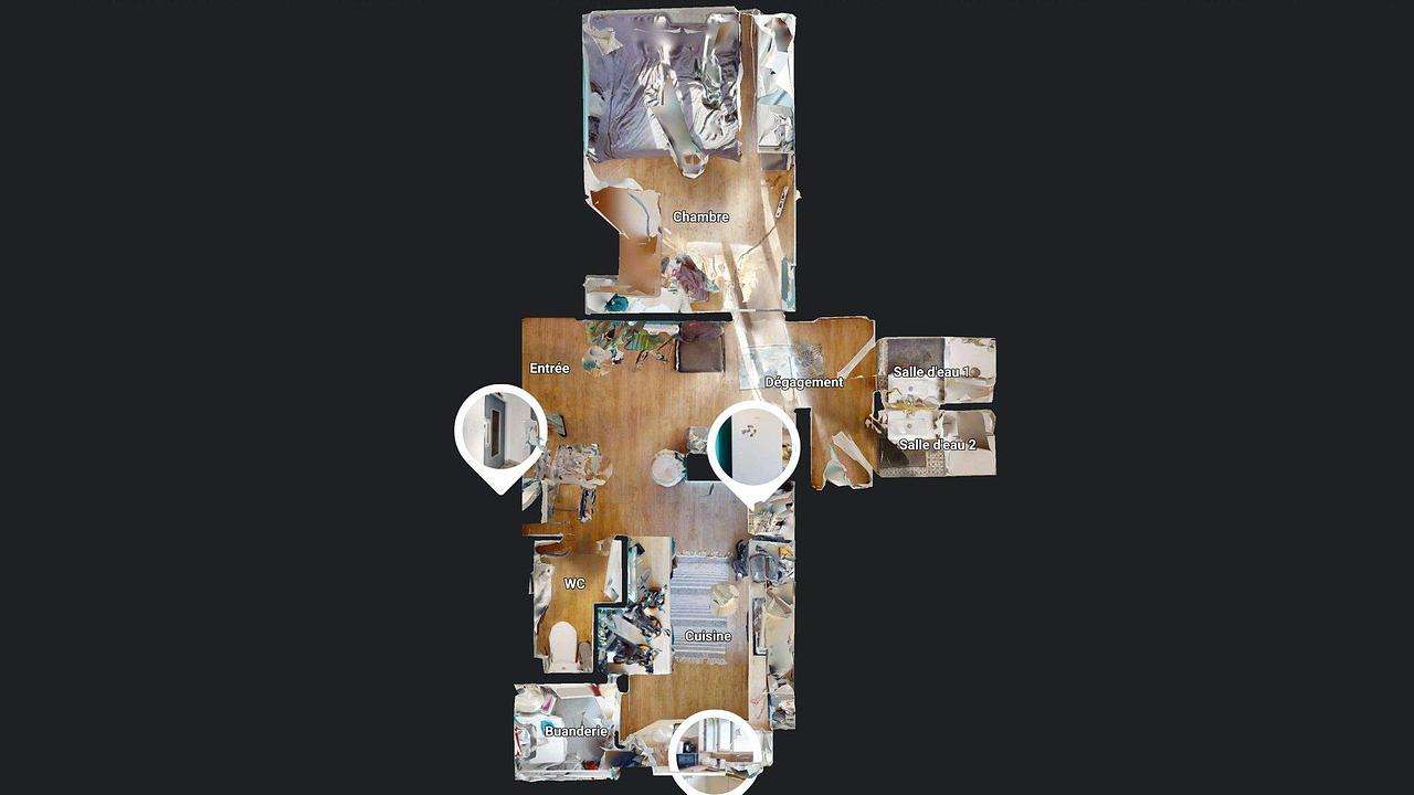 L’appartement comprend également une buanderie avec machine à laver, pratique pour le quotidien.