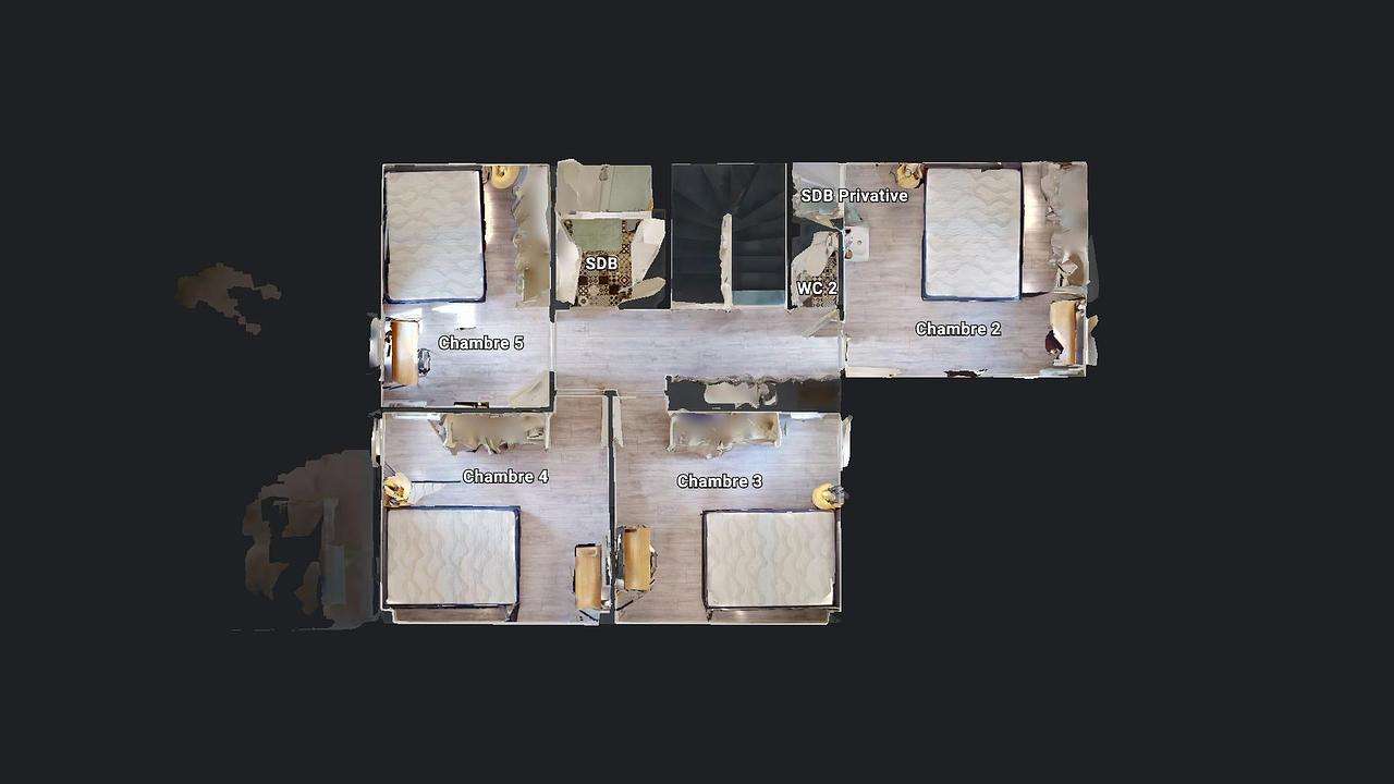 Le logement comporte par ailleurs cinq chambres, trois salles de bain dont deux privatives, et deux WC indépendants. Une première chambre se trouve au rez-de-chaussée et les quatre autres à l’étage.