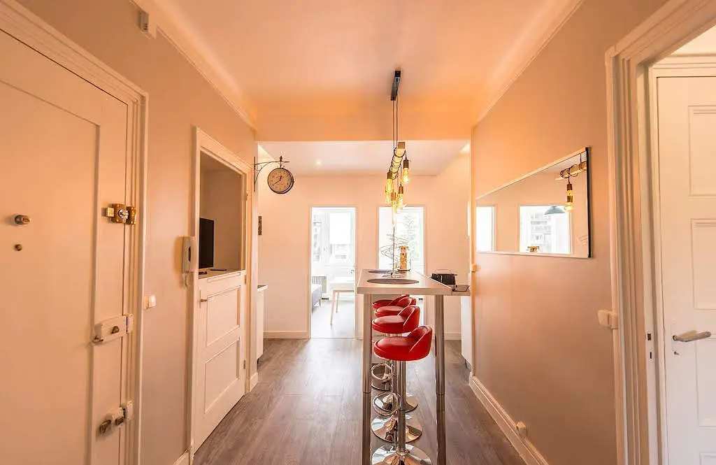 Les parties communes comprennent une cuisine moderne ouverte équipée avec tout le nécessaire : vaisselle, micro-ondes, four, lave-vaisselle, plaques de cuisson, etc.