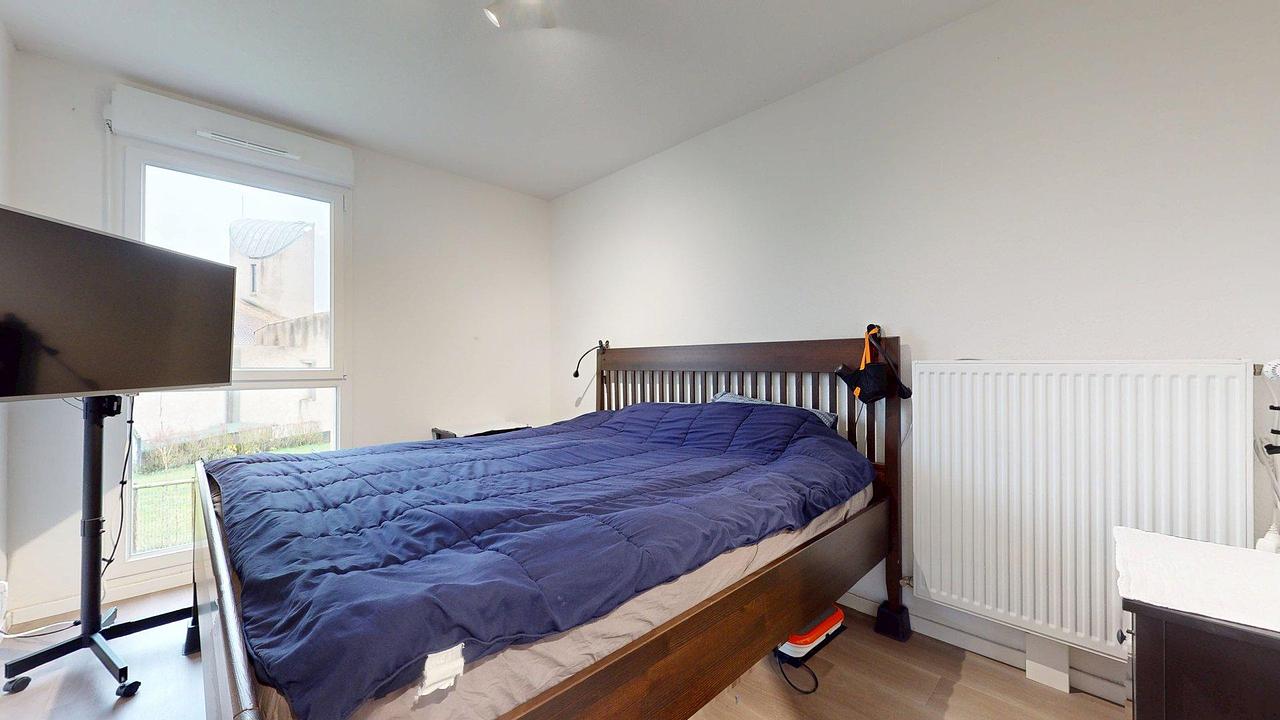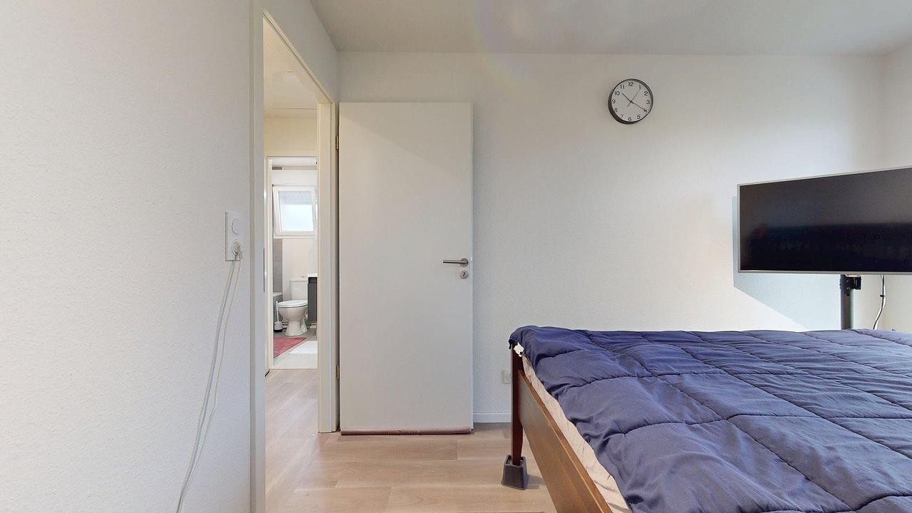 La chambre parentale (13 m²) avec lit double, télévision et placard.