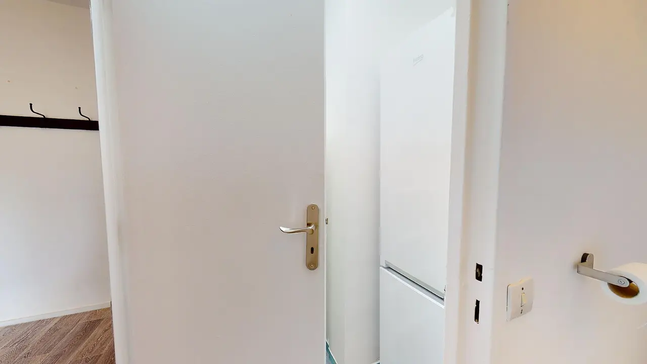 Des WC séparés ainsi qu’un deuxième frigo sont accessibles au niveau de l’entrée du logement.