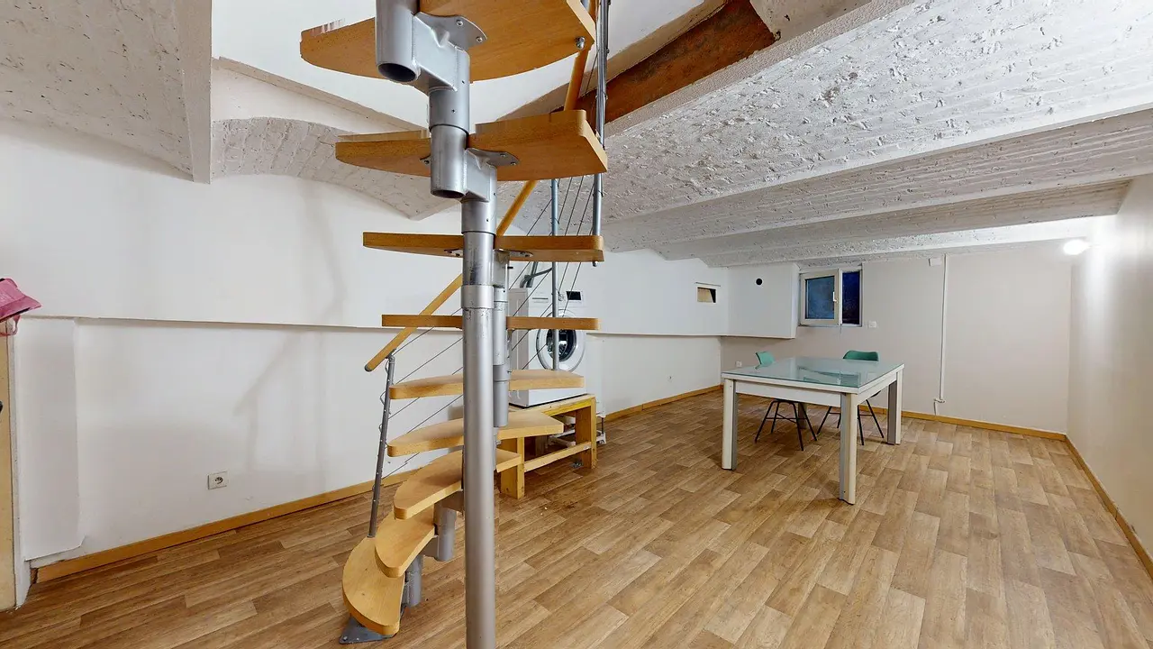 Les résidents bénéficient d’une grande salle commune en sous-sol, faisant office de buanderie. Elle est équipée d’une machine à laver, d’une grande table et de nombreux rangements, idéale pour un usage pratique au quotidien.