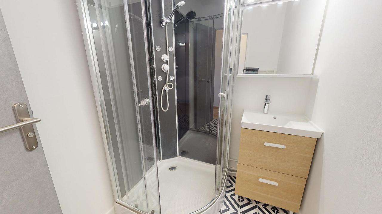 L'appartement dispose de deux salles de bains. La première se compose d'une cabine de douche, un WC, un meuble vasque avec un miroir, des étagères et un porte serviette. La seconde salle de bain avec toilettes séparées dispose d'une grande cabine de douche, un meuble vasque avec un miroir et un porte serviette radiateur.
