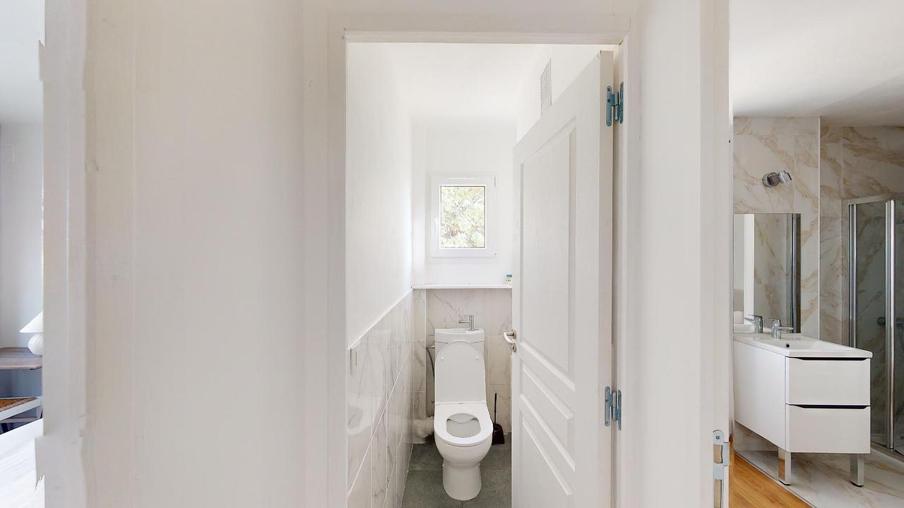 L'appartement comprend cinq chambres, une cuisine parfaitement équipée avec four, plaques de cuisson, hotte, micro-ondes, lave-linge, etc.