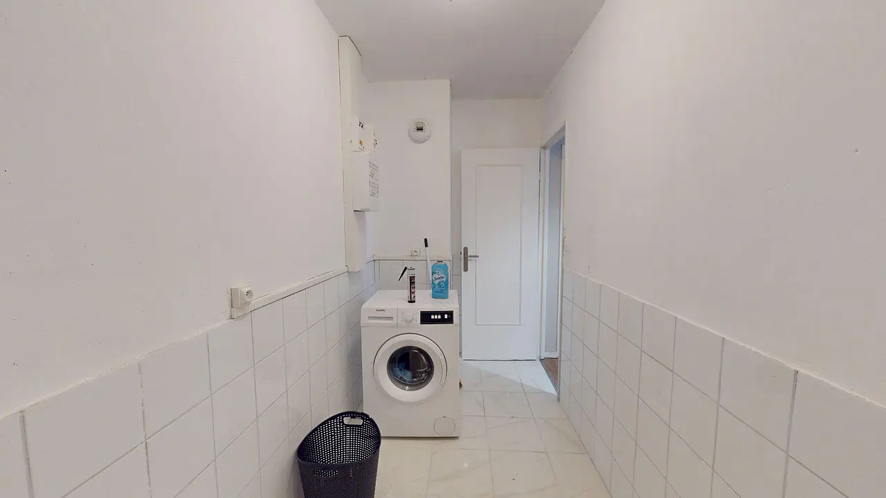Une buanderie équipée d’un lave-linge facilite le quotidien des colocataires.