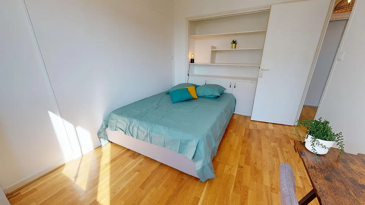 Les 3 chambres présentes sont meublées avec lit double, bureau, et placard de rangements.