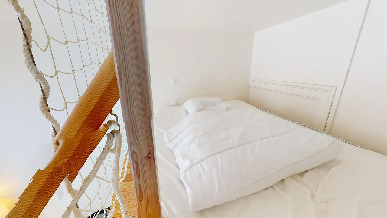 Ce logement comporte donc 3 chambres toutes entièrement équipée et fonctionnelles avec des lits en mezzanine, des bureaux, des chaises et des rangements.