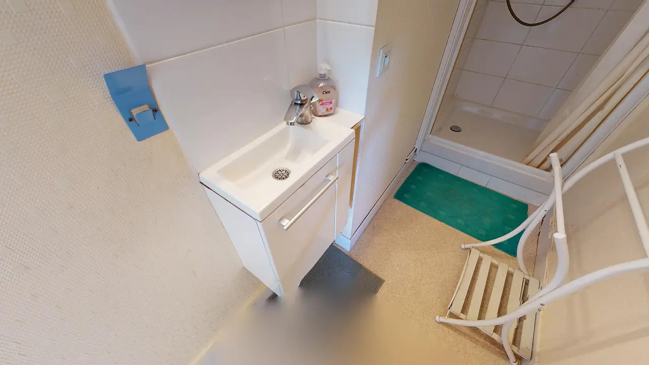 La chambre 3, la plus grande de la colocation mesure 15m2 et donne l’accès à un balcon privatif. Cette chambre est aménagé d’un lit double, d’une table, d’un