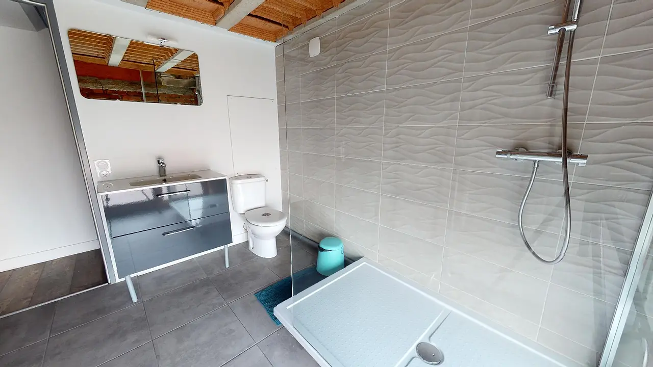 Le rez-de-chaussée comporte quant à lui une deuxième salle de bain à l'italienne avec WC et sèche serviette et les 2 dernières chambres de cette colocation.