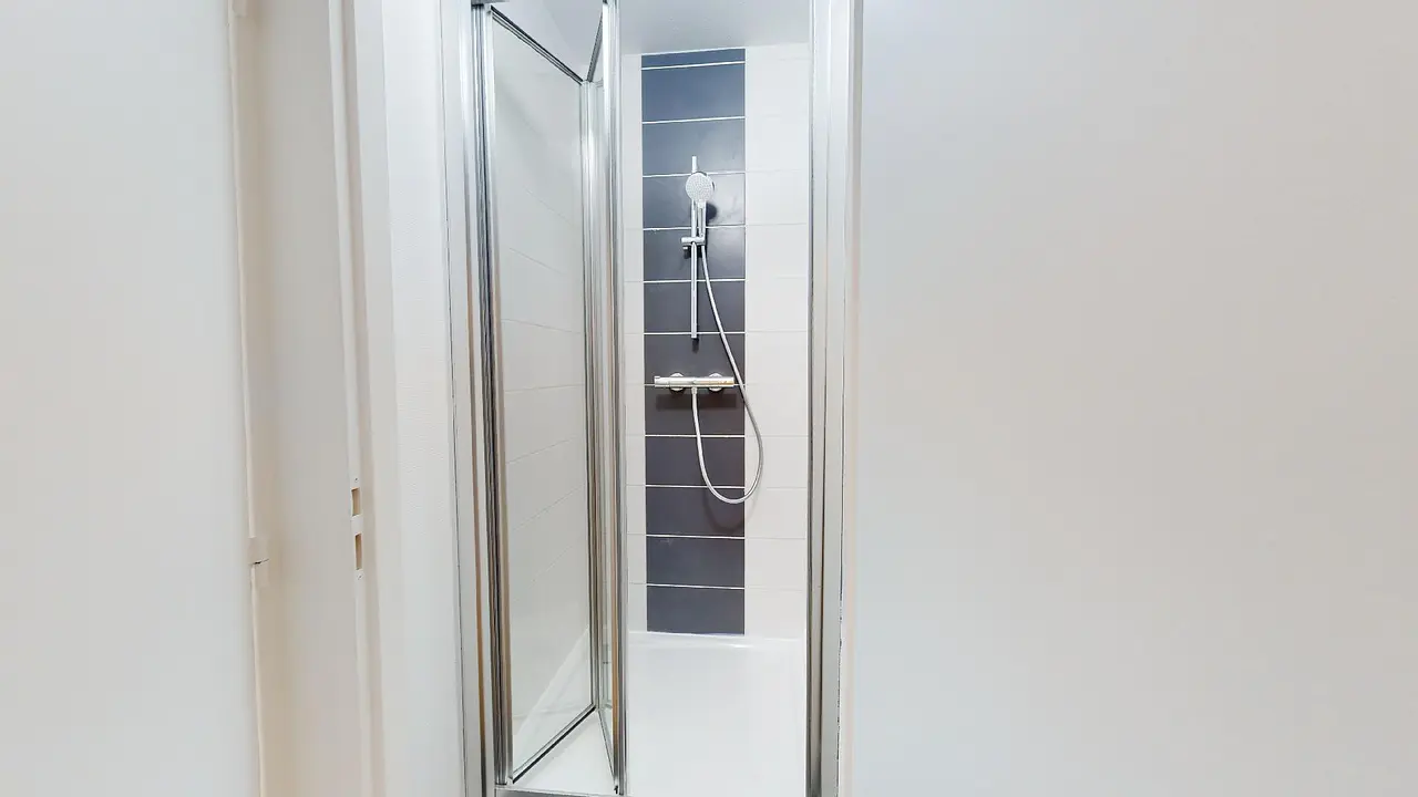 Deux salles de bains, l’une avec douche, meuble vasque et machine à laver et l’autre avec douche, ainsi que des WC séparés viennent compléter ce logement.