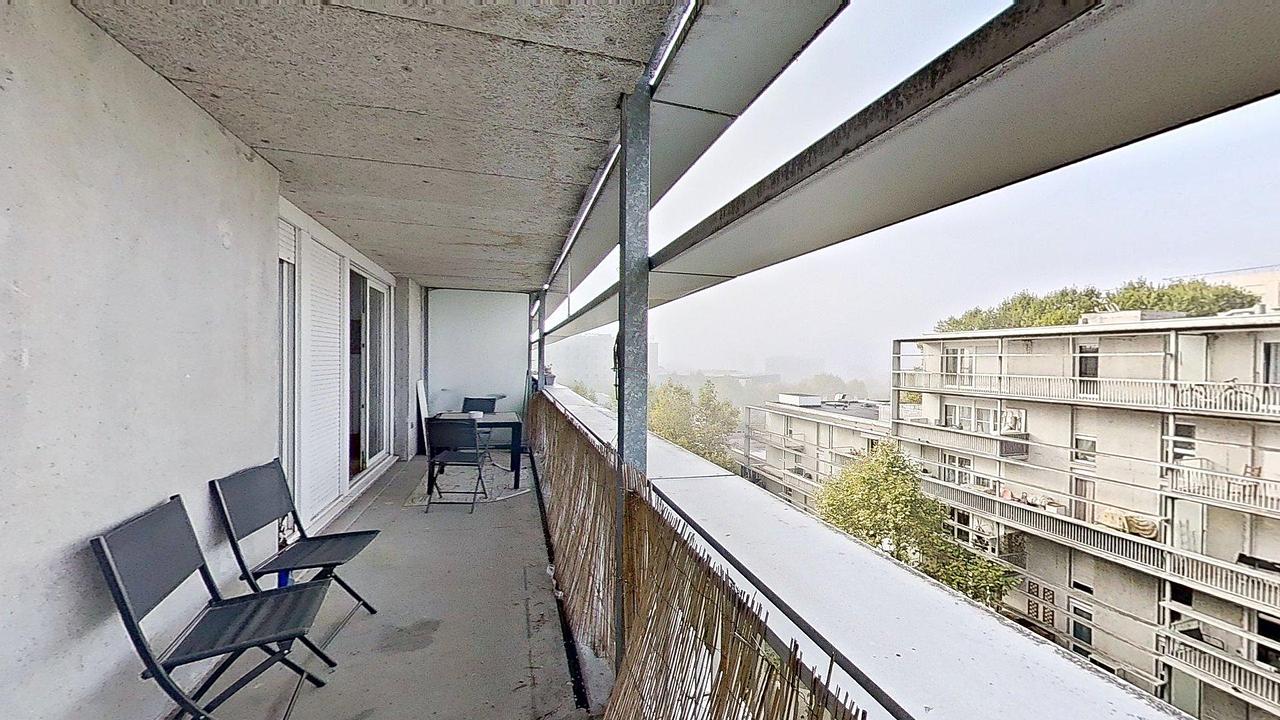 Un large balcon filant accessible depuis le séjour offre un espace agréable pour installer une table et des chaises et profiter de l’extérieur.