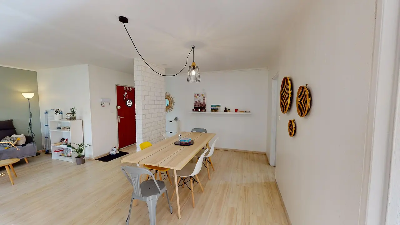 L’appartement se compose d’une grande pièce de vie avec salon et un espace salle à manger, d’une cuisine, d’une salle de bain, d’un toilette indépendant, d’espaces de rangement ainsi que de trois chambres.