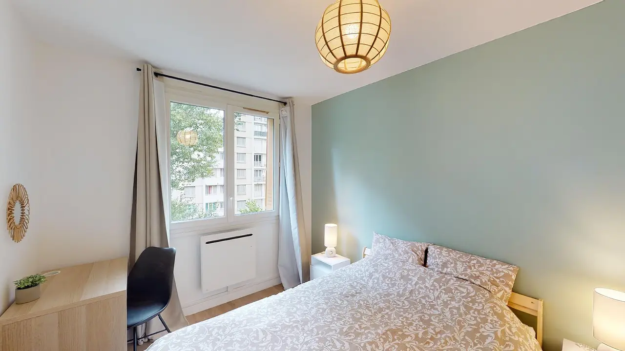 Enfin, les deux chambres disposent d’un lit double, d’un bureau, de deux tables de chevet accompagnées de lampes et de rangements.