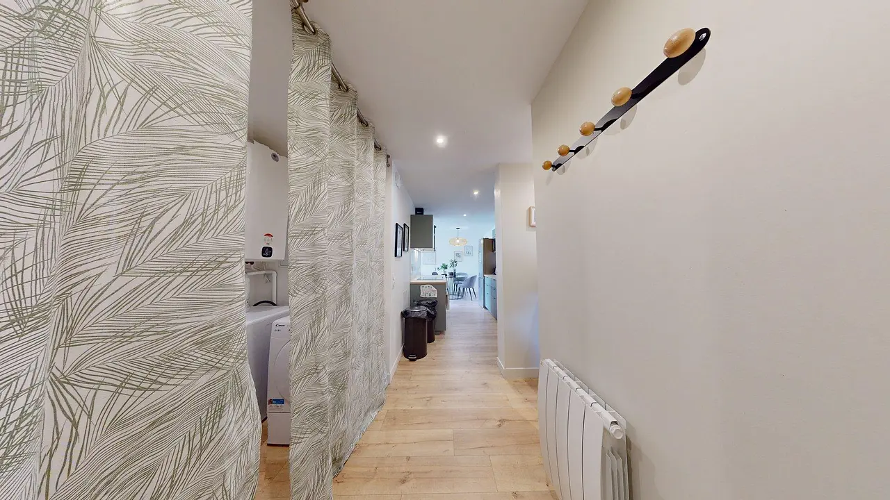 Une visite virtuelle sera bientôt disponible. Les photos vous permettent de vous projeter entretemps dans les espaces.🛋️ LES ESPACES COMMUNSLa pièce de vie est aménagée avec un canapé, une table basse, un meuble TV et une télévision. Elle donne accès à un balcon, idéal pour profiter de l’extérieur, équipé de mobilier d’extérieur agréable. Une table à manger avec ses chaises complète cet espace convivial et chaleureux.