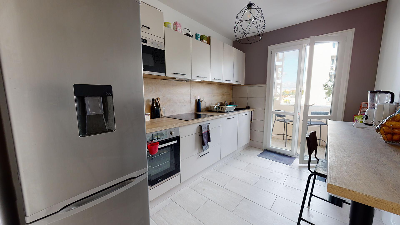 Le plus : 2 balcons sont présents dans cette colocation. Le premier est accessible depuis la cuisine et le second depuis le salon.