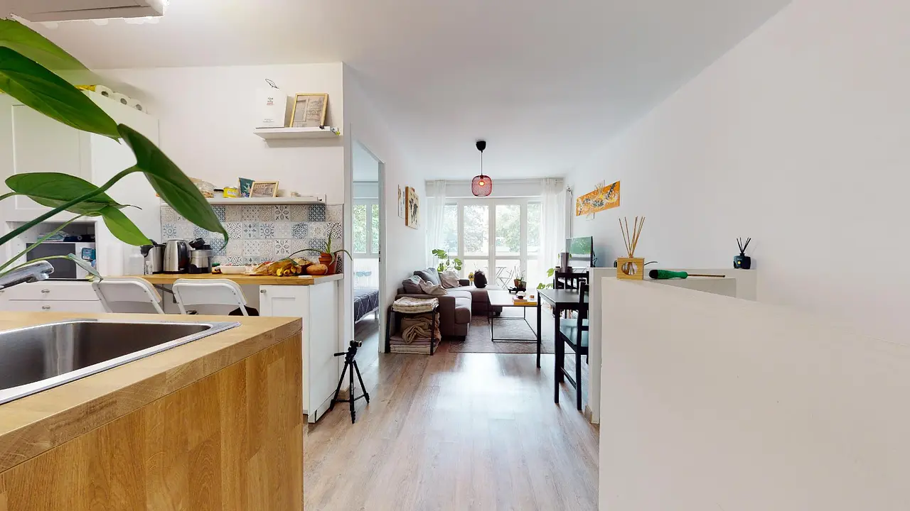 Trois balcons complètent cet appartement, un gain d'espace et de confort bienvenu. Il est loué avec un garage et une place de parking.