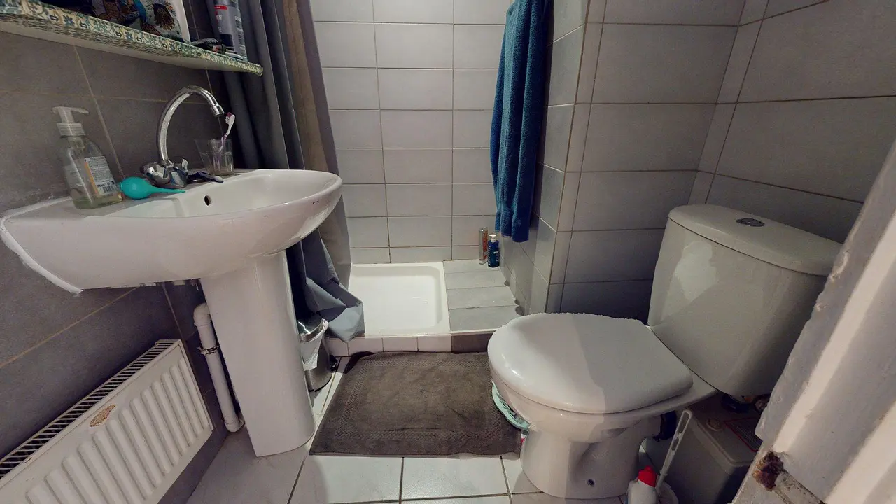 La salle d'eau se compose d'une douche, d'un lavabo avec un miroir ainsi que d'un WC.