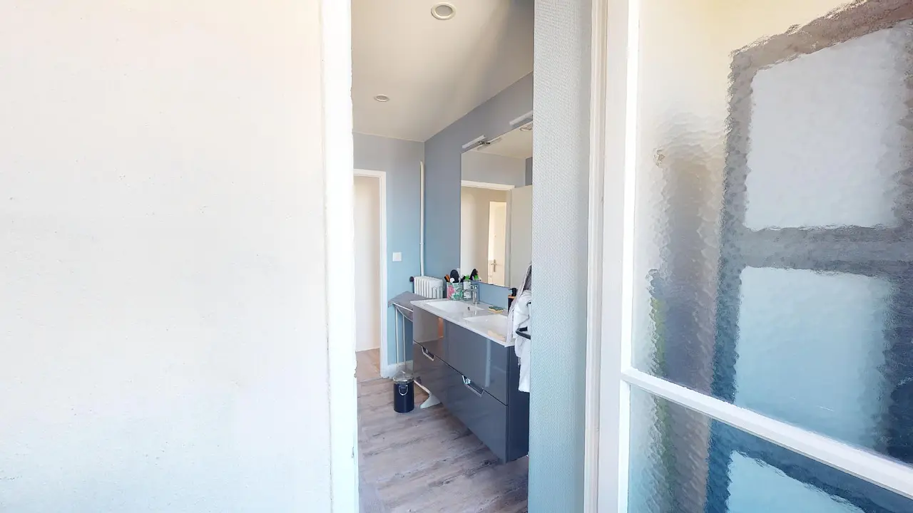 Viennent compléter ce bien : des WC séparés et une salle d'eau avec double vasques, une cabine de douche, donnant sur une loggia, qui est idéale pour faire sécher votre linge.