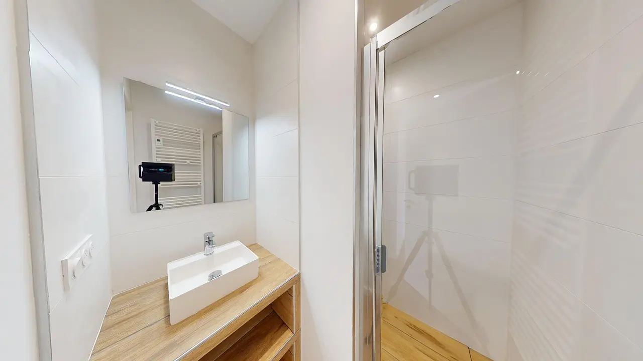 - Une salle d'eau avec douche et sèche-serviettes ;