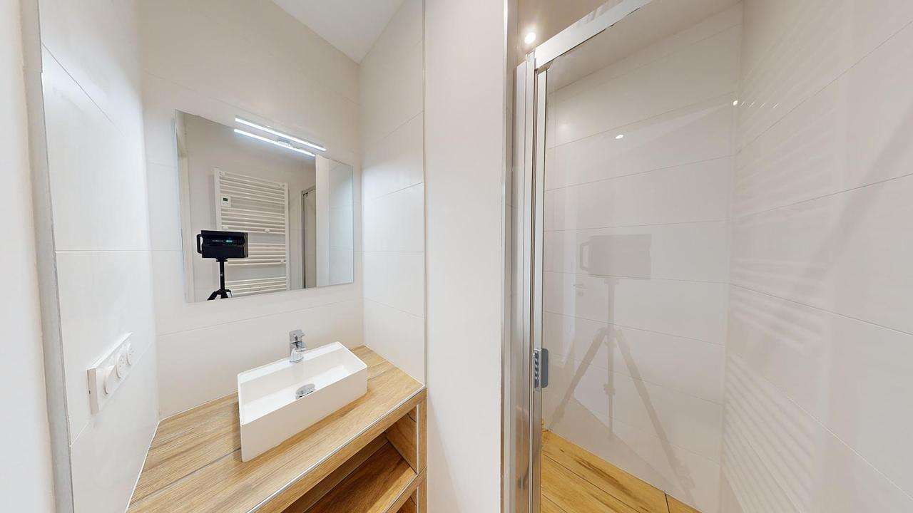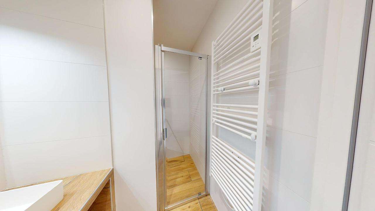 - Une salle d'eau avec douche et sèche-serviettes ;