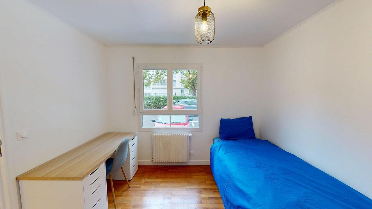 La chambre est équipée d'un lit simple, un dressing et un bureau.