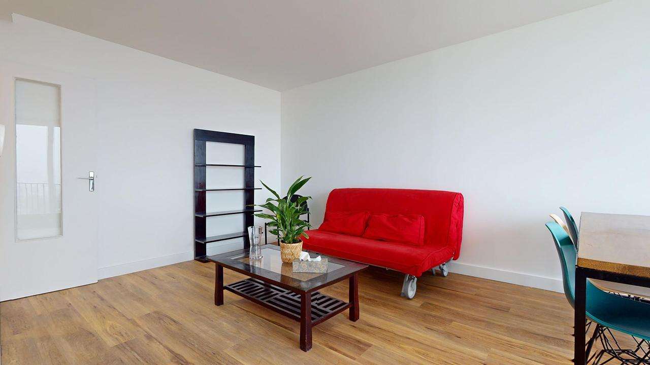 La pièce de vie, spacieuse et lumineuse, est aménagée avec un canapé confortable et une table à manger, idéale pour partager des moments conviviaux au quotidien. Elle s'ouvre directement sur un balcon, vous permettant de profiter de l'extérieur à tout moment.