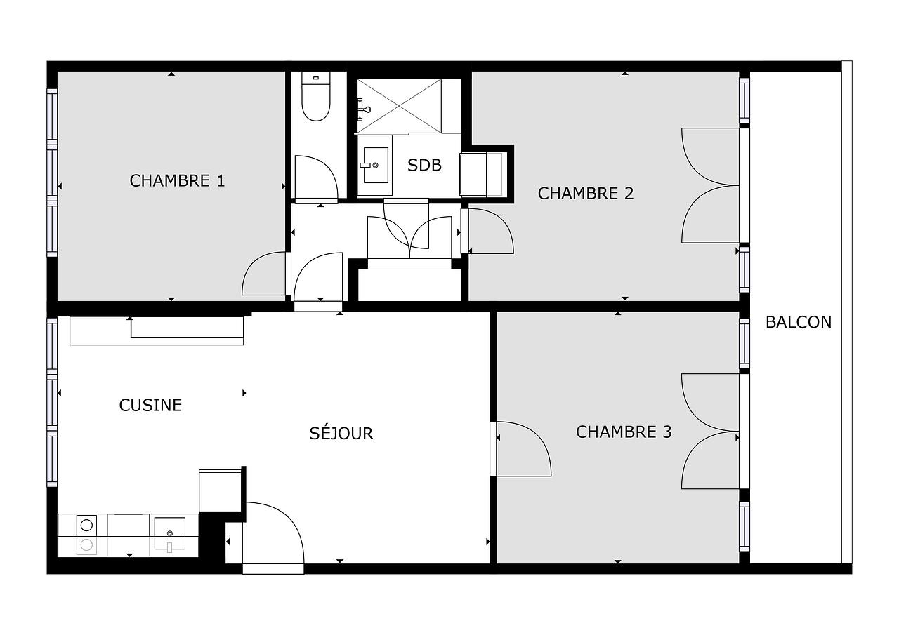 L’appartement propose trois chambres, chacune pensée pour un usage en colocation, offrant un espace nuit confortable et propice au calme. Les volumes sont bien répartis, ce qui permet une circulation fluide dans l’ensemble du logement. Le chauffage et l’eau chaude sont collectifs.